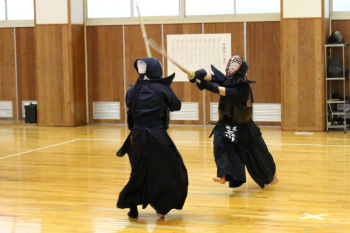 私たち女子剣道部は、冬休みに多くの錬成会に参加させていただきました。県内だけでなく県外の選手と剣を交えたことを通して、自分たちの成長と今後の課題を見つけることができました。ずっと目標にしてきた県大会出場をまだ達成できていないので、この冬の経験を活かし、今まで以上に個々が意識を高めてチーム一丸となり、最後の夏こそ県大会に出場します。