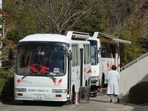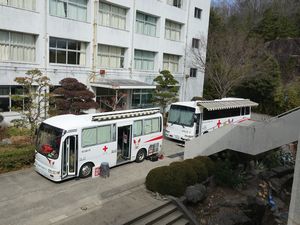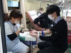 日本赤十字から献血バスに来ていただき3年生と教職員の希望者が献血を行いました。