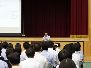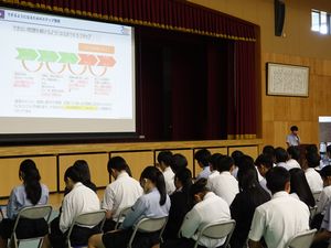 10月17日(金) 高校2年生を対象に多くの保護者の皆さんにもご参加いただき「大学進学講演会」を実施しました。 ベネッセコーポレーションから講師を招き、大学進学に向けて2年生から取り組むべきことや心構え、入試の種類やスケジュールなどのお話を聞きました。