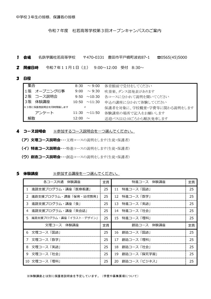 ・第3回オープンキャンパスの申込はコチラから(10月11日~)